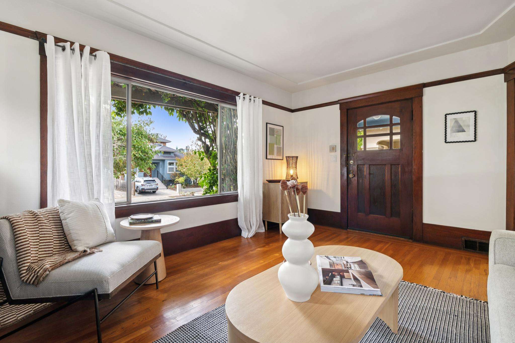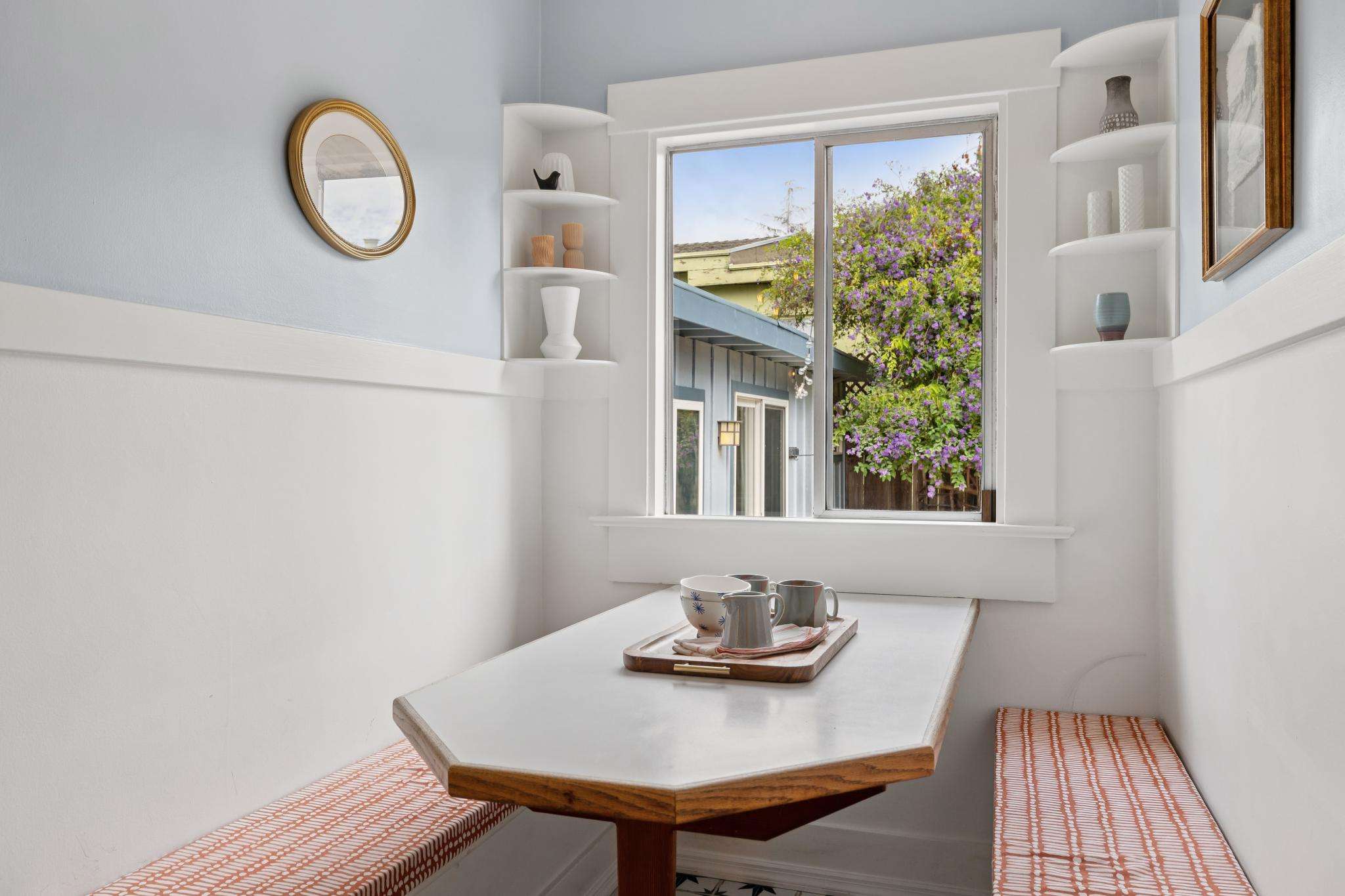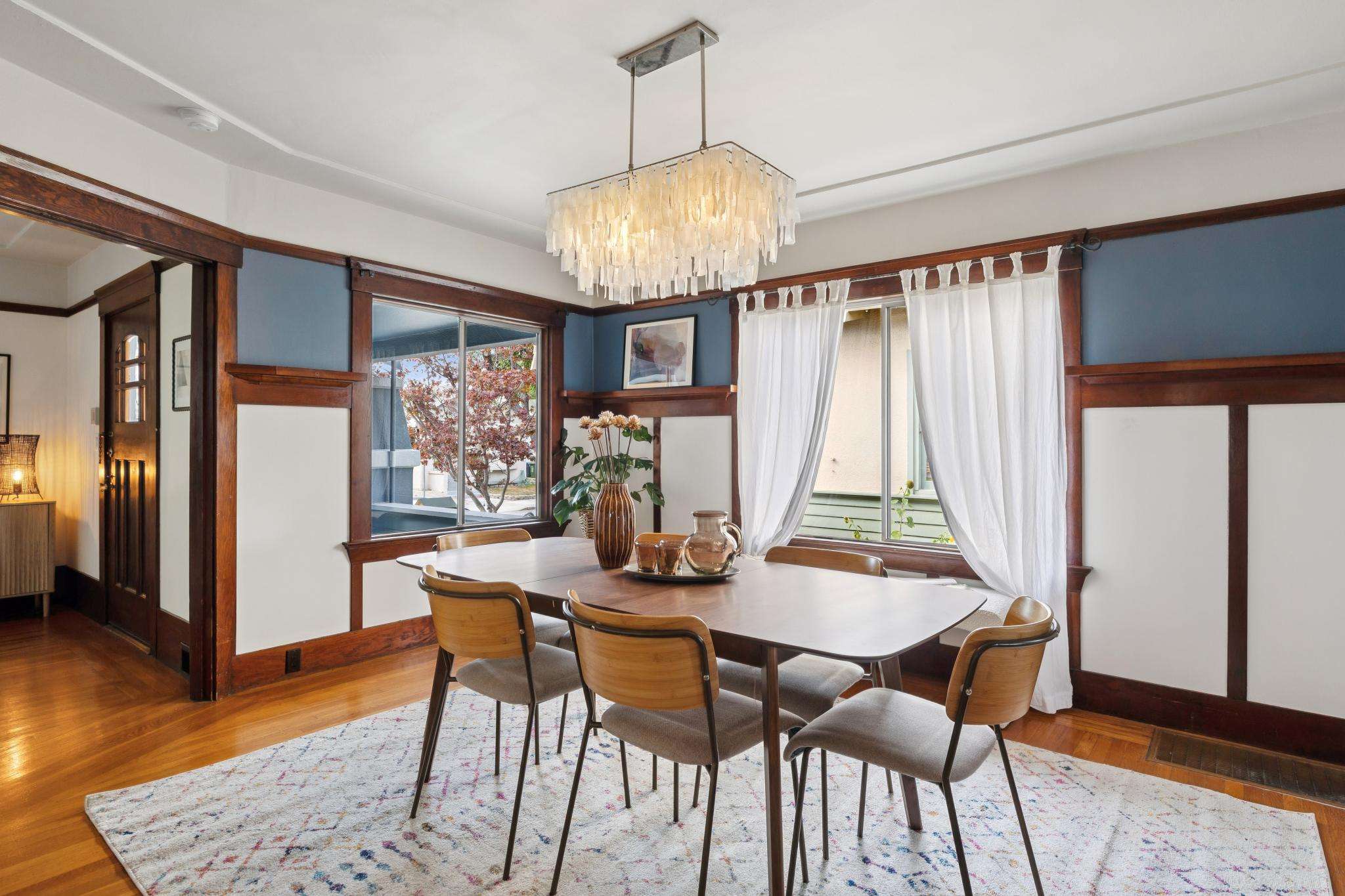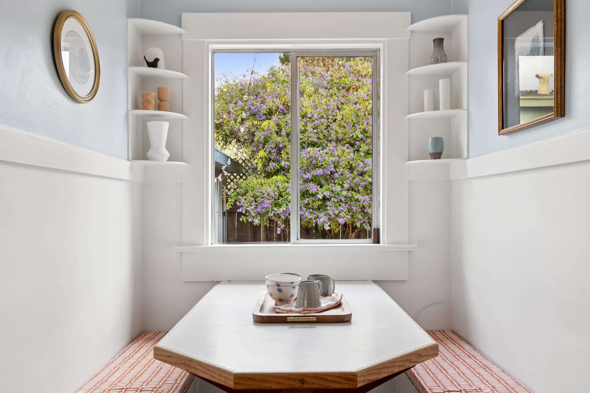 Set on one of the most beautiful blocks of Bonar Street in Berkeley, this refreshed 100+ year old Craftsman bungalow embodies authentic character with everyday practicality. The tree-lined street, peppered with little libraries and framed by mature leafy canopies, creates an idyllic backdrop for this classic home. A trellis of purple bougainvillea softens the front façade, adding to the bungalow’s undeniable curb appeal.