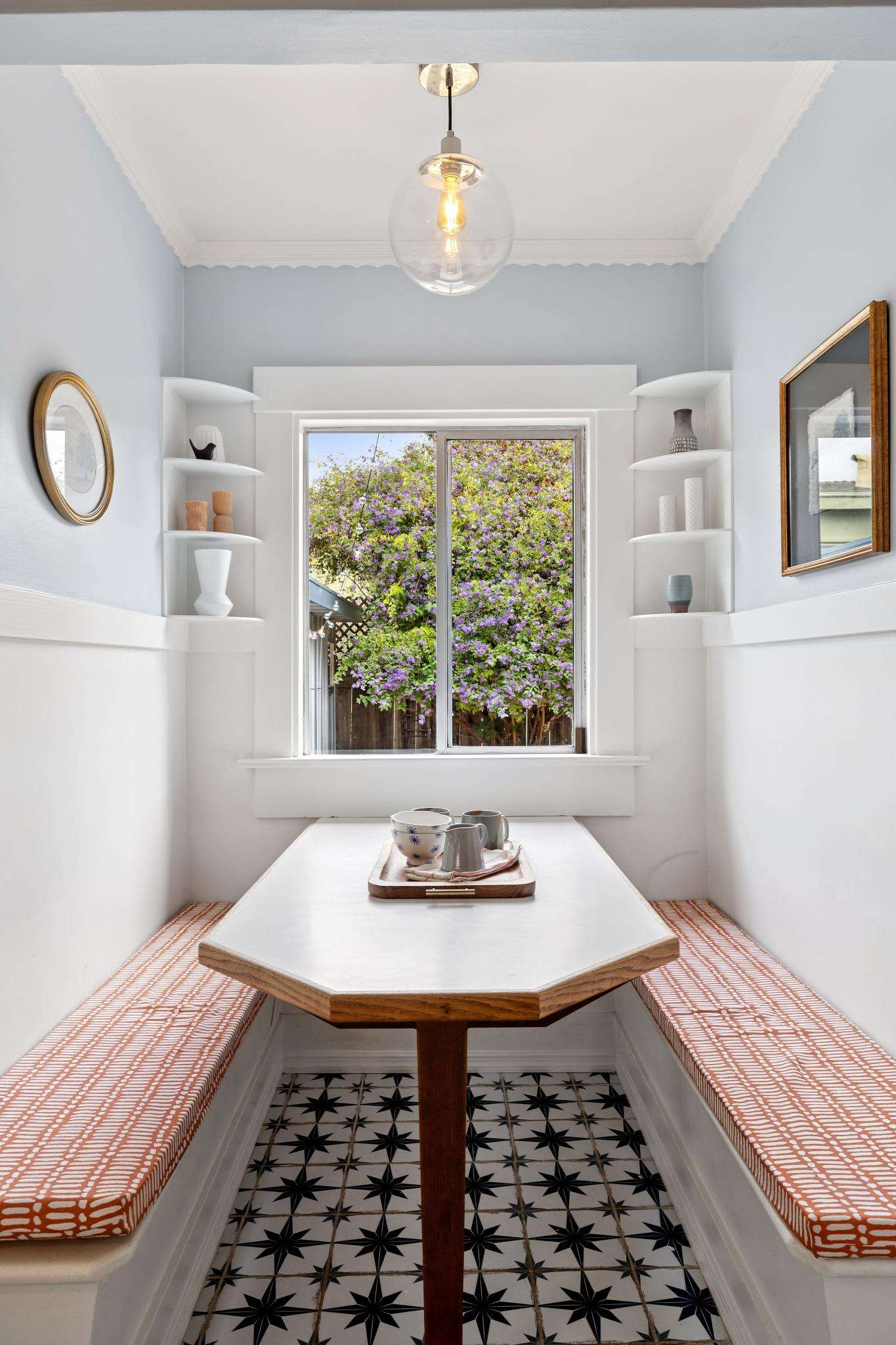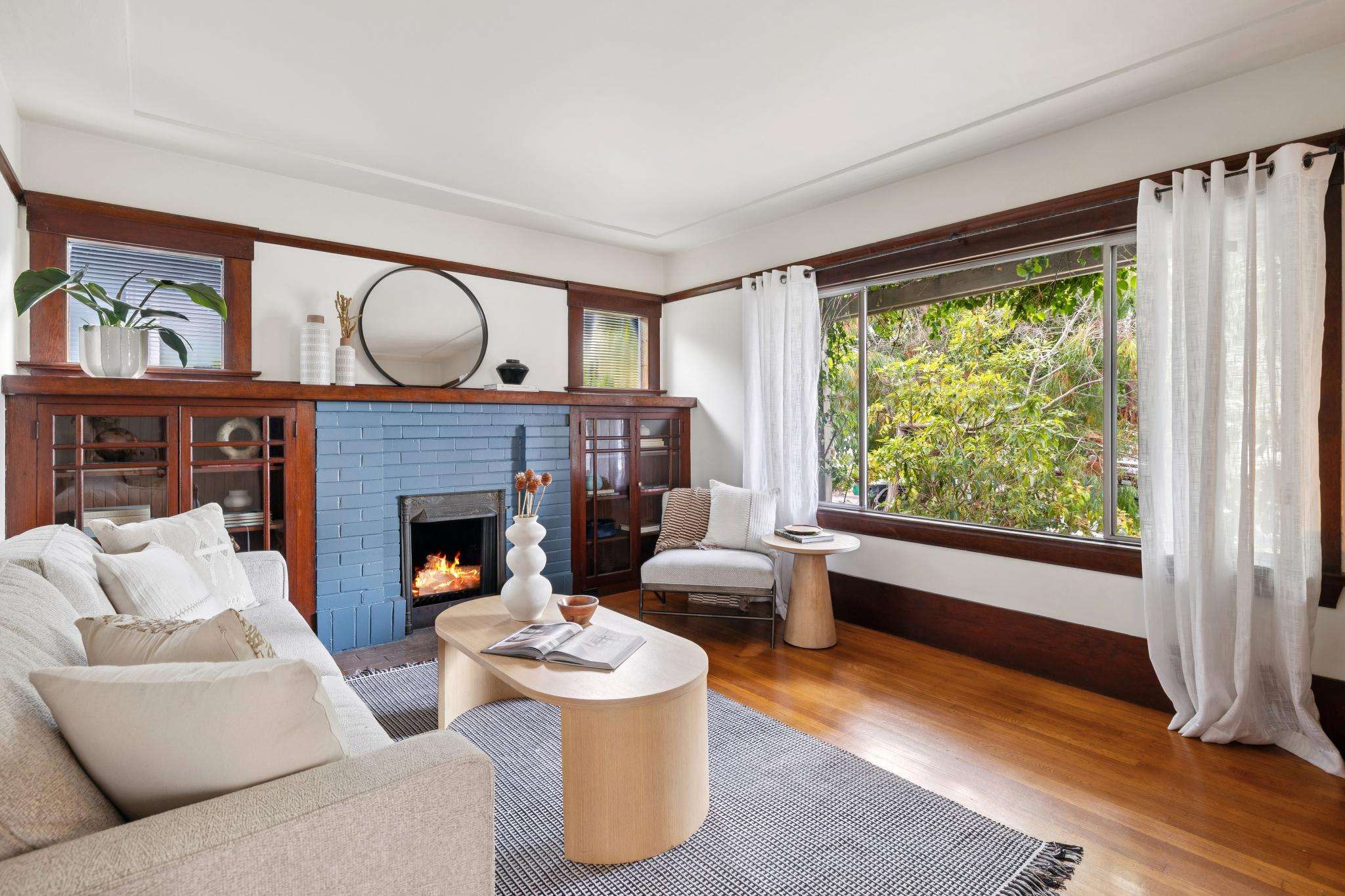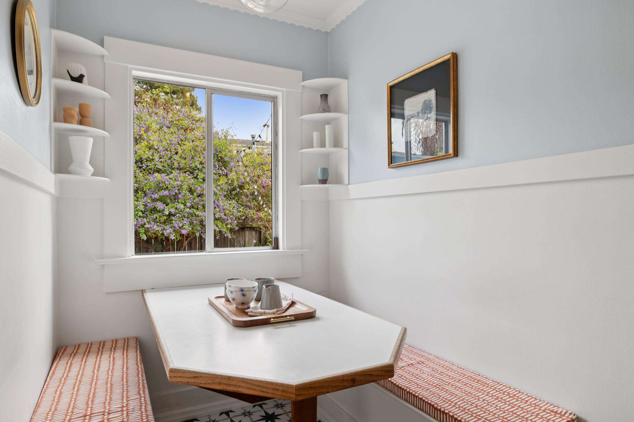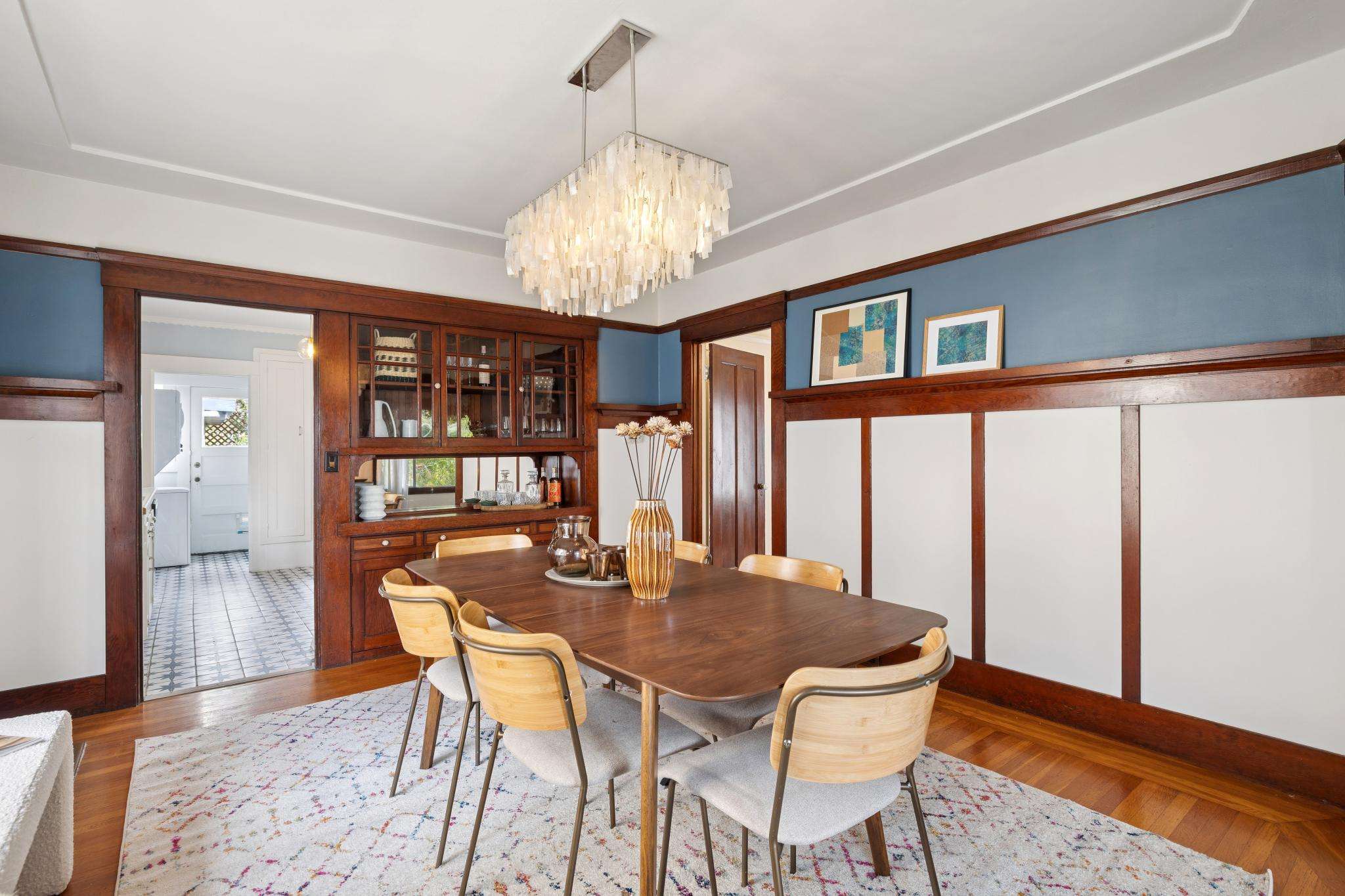 Set on one of the most beautiful blocks of Bonar Street in Berkeley, this refreshed 100+ year old Craftsman bungalow embodies authentic character with everyday practicality. The tree-lined street, peppered with little libraries and framed by mature leafy canopies, creates an idyllic backdrop for this classic home. A trellis of purple bougainvillea softens the front façade, adding to the bungalow’s undeniable curb appeal.
