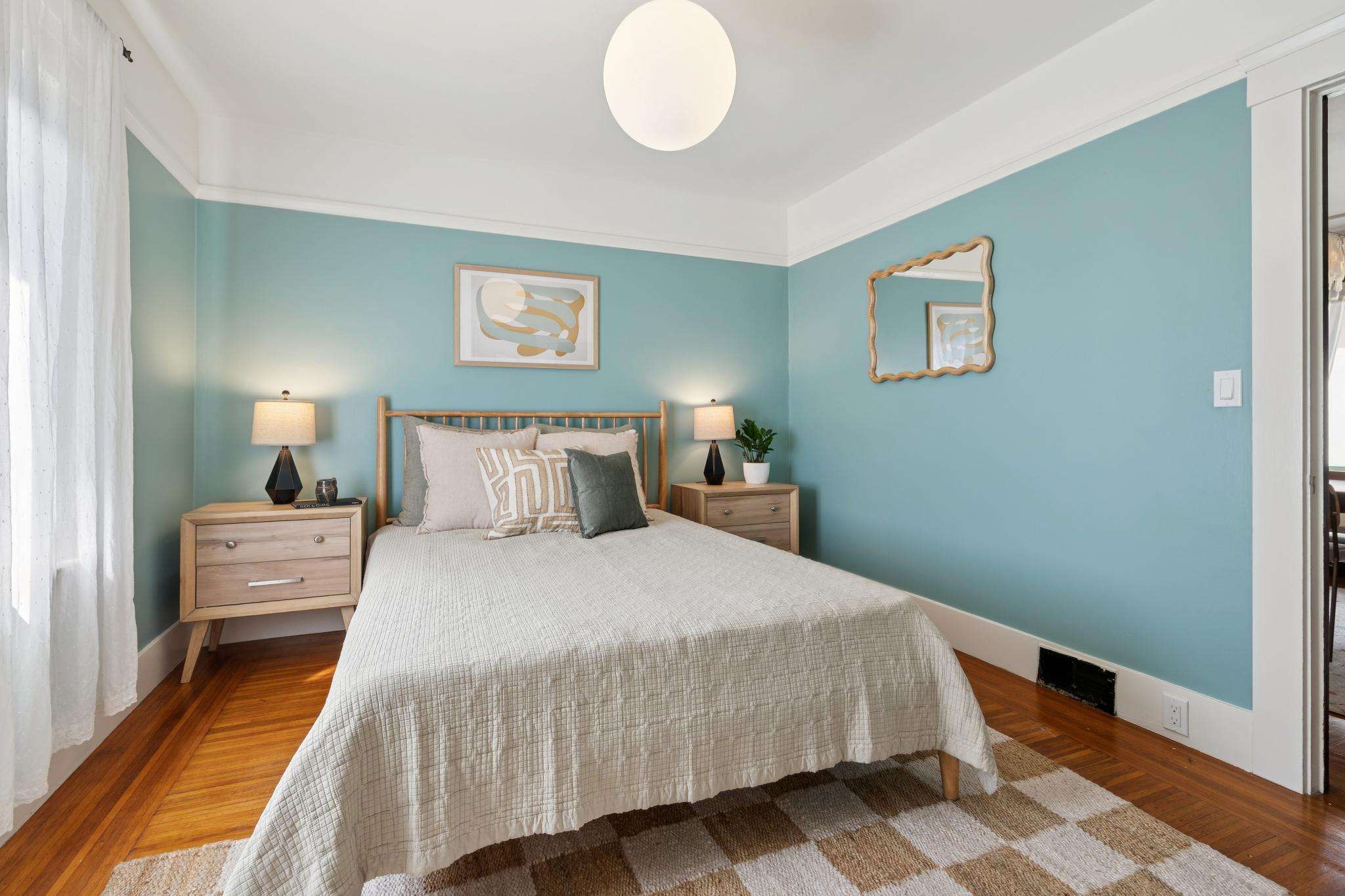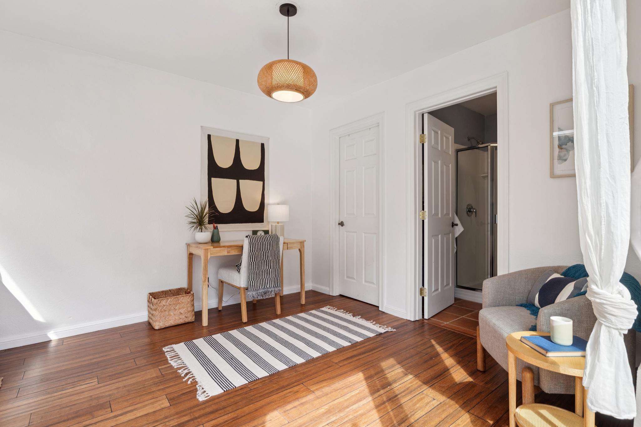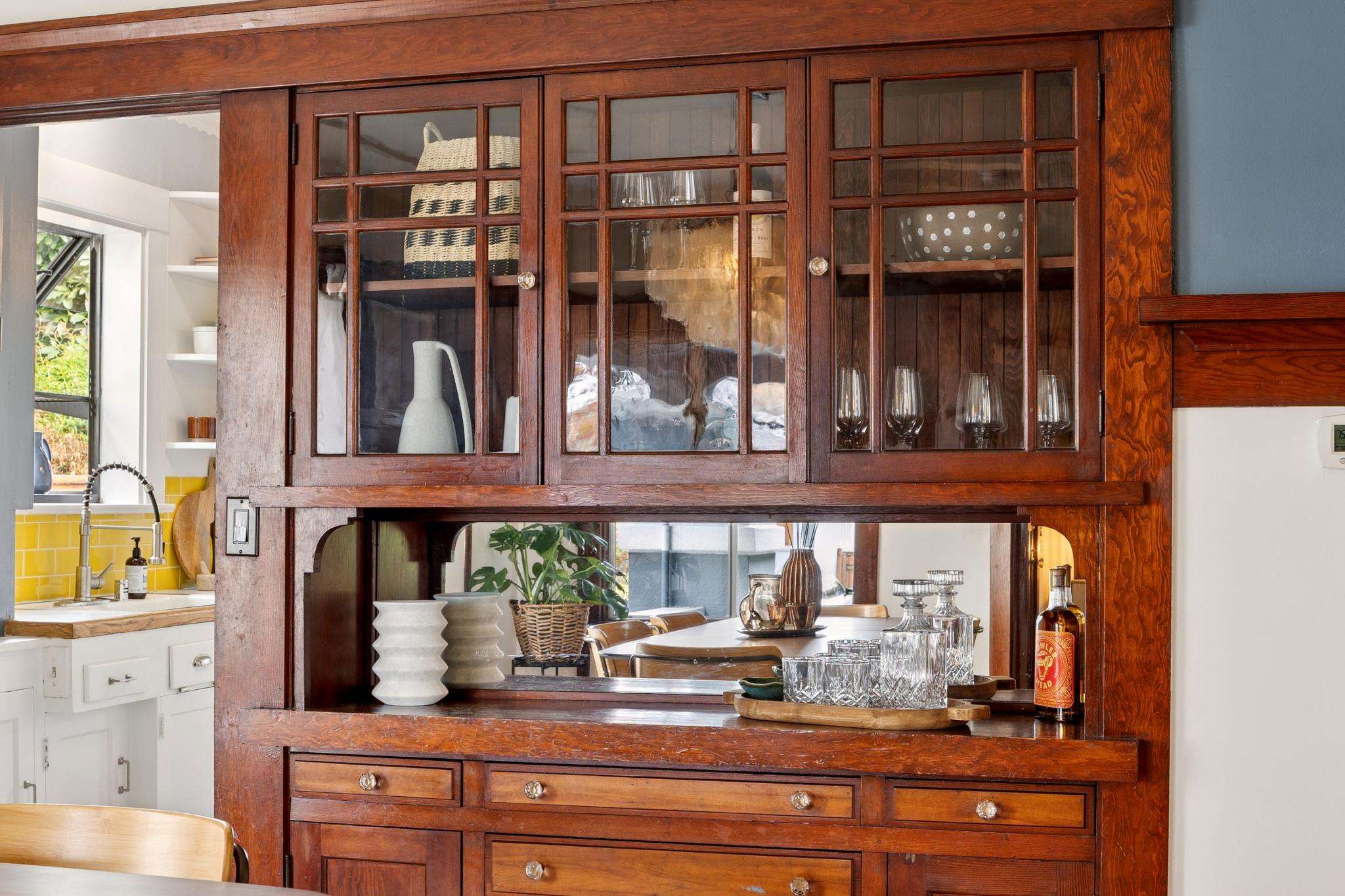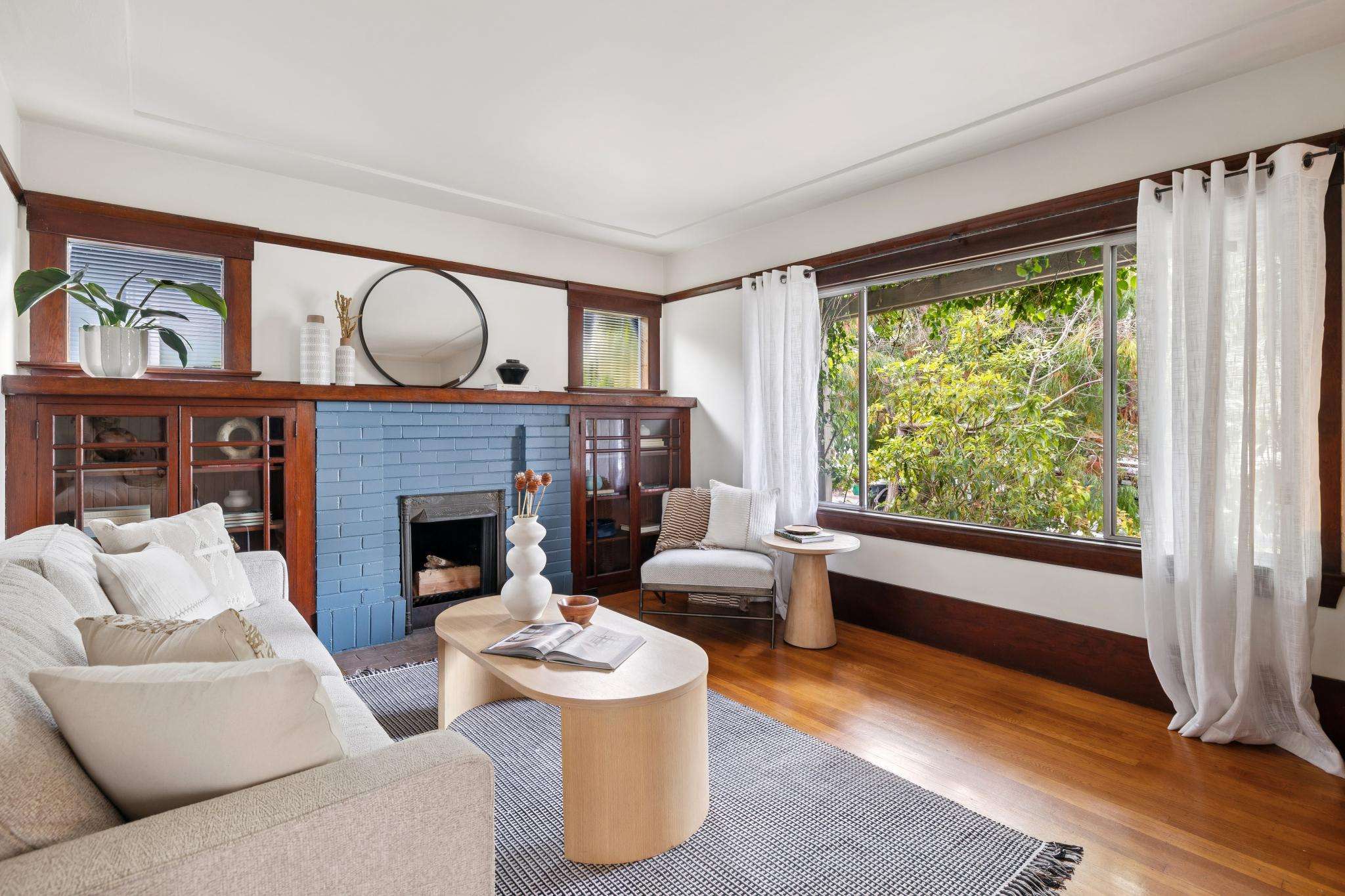Set on one of the most beautiful blocks of Bonar Street in Berkeley, this refreshed 100+ year old Craftsman bungalow embodies authentic character with everyday practicality. The tree-lined street, peppered with little libraries and framed by mature leafy canopies, creates an idyllic backdrop for this classic home. A trellis of purple bougainvillea softens the front façade, adding to the bungalow’s undeniable curb appeal.