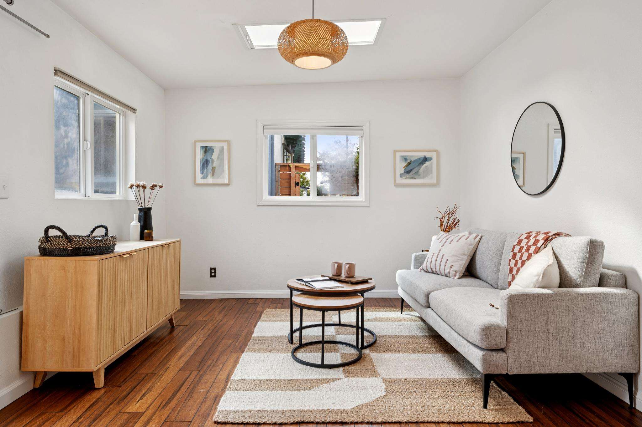 The home’s thoughtful and smart modernization includes a brand-new roof and complete electrical rewiring, a newer water heater, and a newer forced air furnace, ensuring comfort and peace of mind.